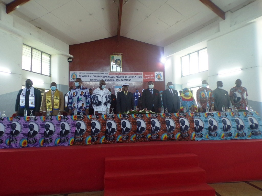 Les conseillers municipaux Rdpc des six arrondissements du Wouri, terre des grandes joutes électorales, se sont donnés rendez-vous ce jeudi 26 novembre 2020 à la permanence du Parti de Bonanjo, pour accueillir le secrétaire général du Comité central du Rdpc. Jean Nkuété est venu parler avec les candidats et les équipes de campagne du Rdpc aux prochaines élections régionales, des stratégies devant conduire à la victoire des listes du Parti lors des élections régionales du 6 décembre prochain.